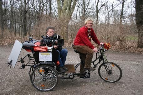vom rbb Fernsehen, mit der Rikscha Thomas Tekath durch Berlin, durch das Diplomatenviertel von Berlin, im Tiergarten